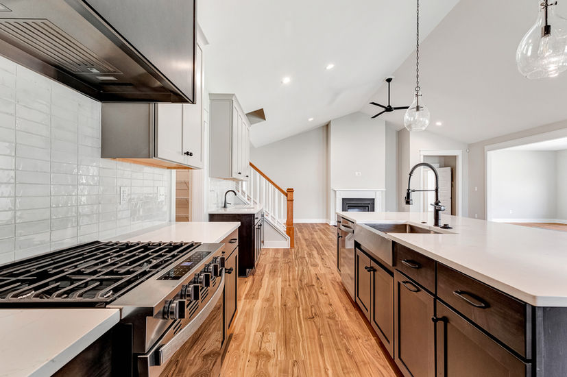 Emerald Series standard features: dual fuel heat pump, propane water heater, gas fireplace, LVP flooring, 9-ft ceilings, 42” kitchen cabinets with soft-close doors & drawers